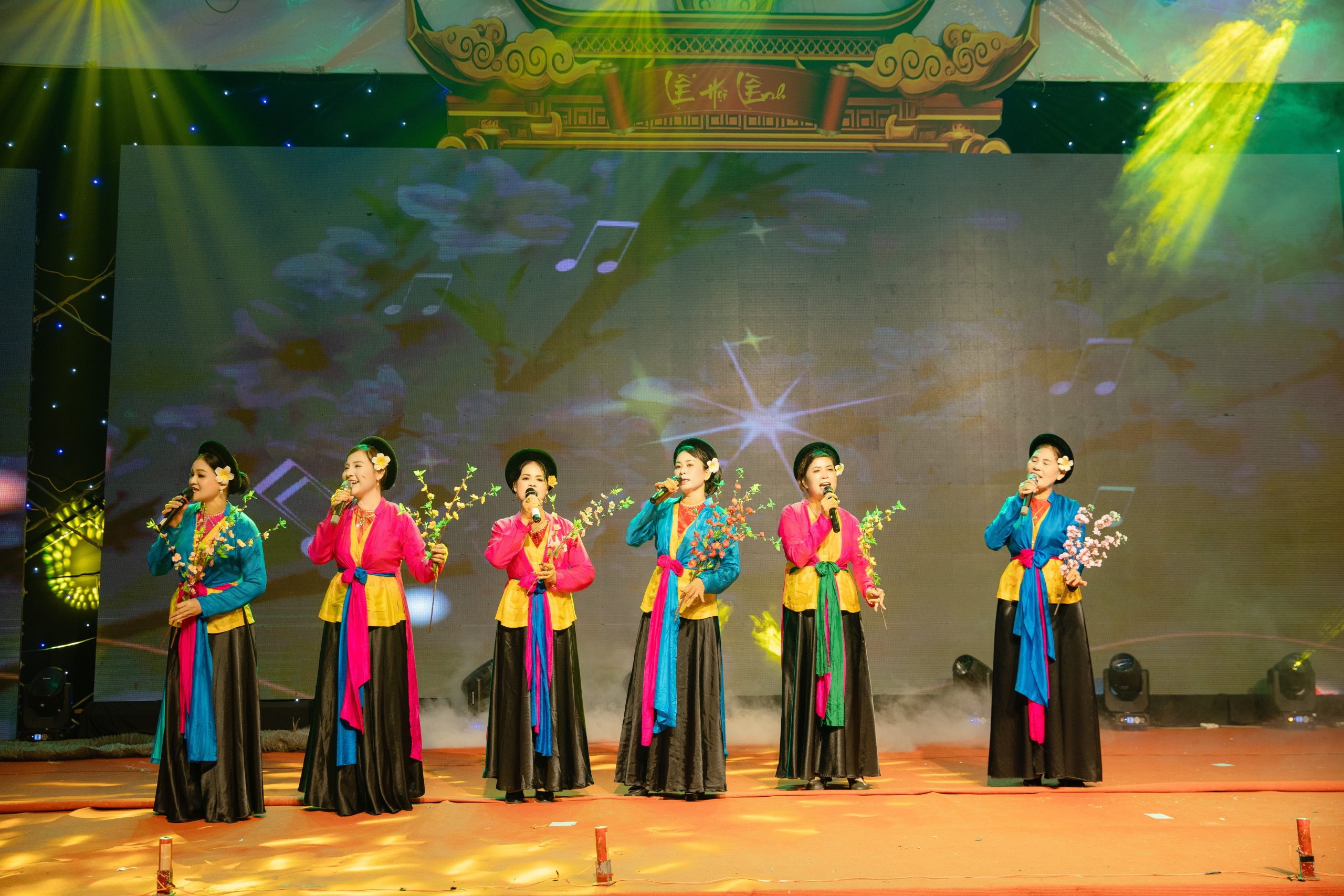 Chương trình nghệ thuật mở màn với các tiết mục đặc sắc như “Trẩy hội Xuân”, “Tình ca đất Hưng Yên”, “Trầu cau quan họ”… đã tái hiện không gian văn hóa truyền thống giàu cảm xúc.